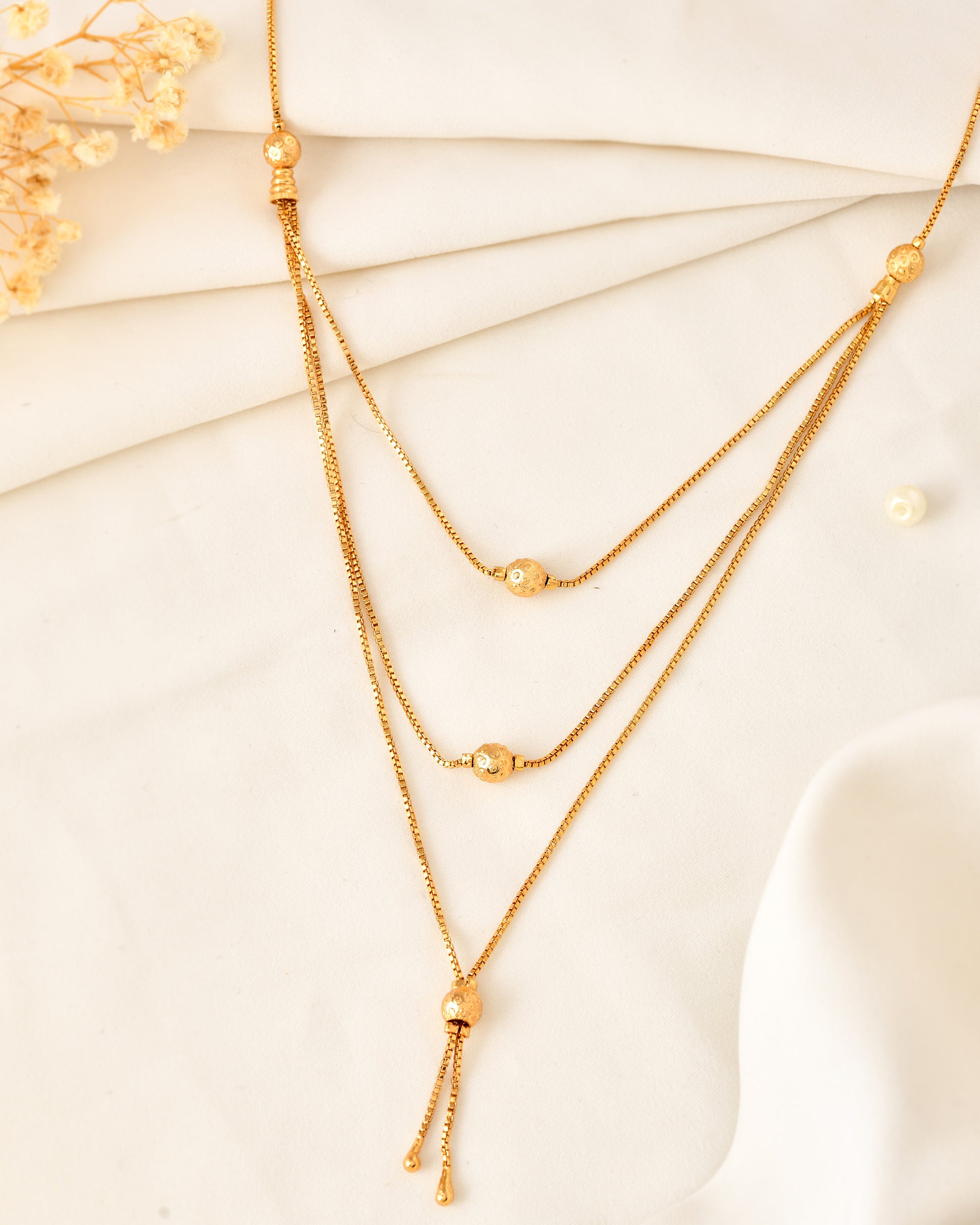 Stylish Triple Layer Box Chain with Tassel Drop